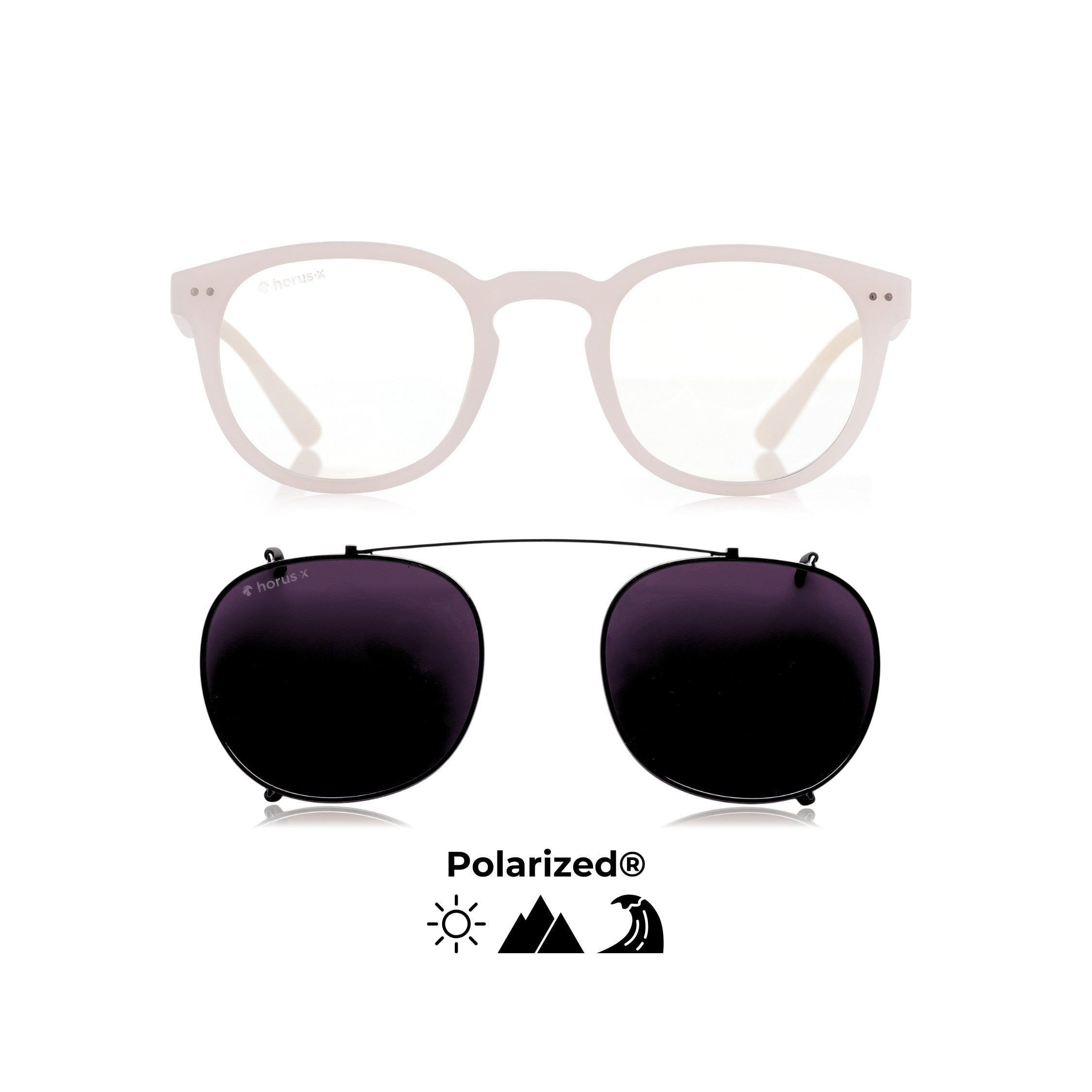 An iconic frame in subtle colors, enhanced by a retro solar clip-on. Impossible to go unnoticed with the X-plorer pack.