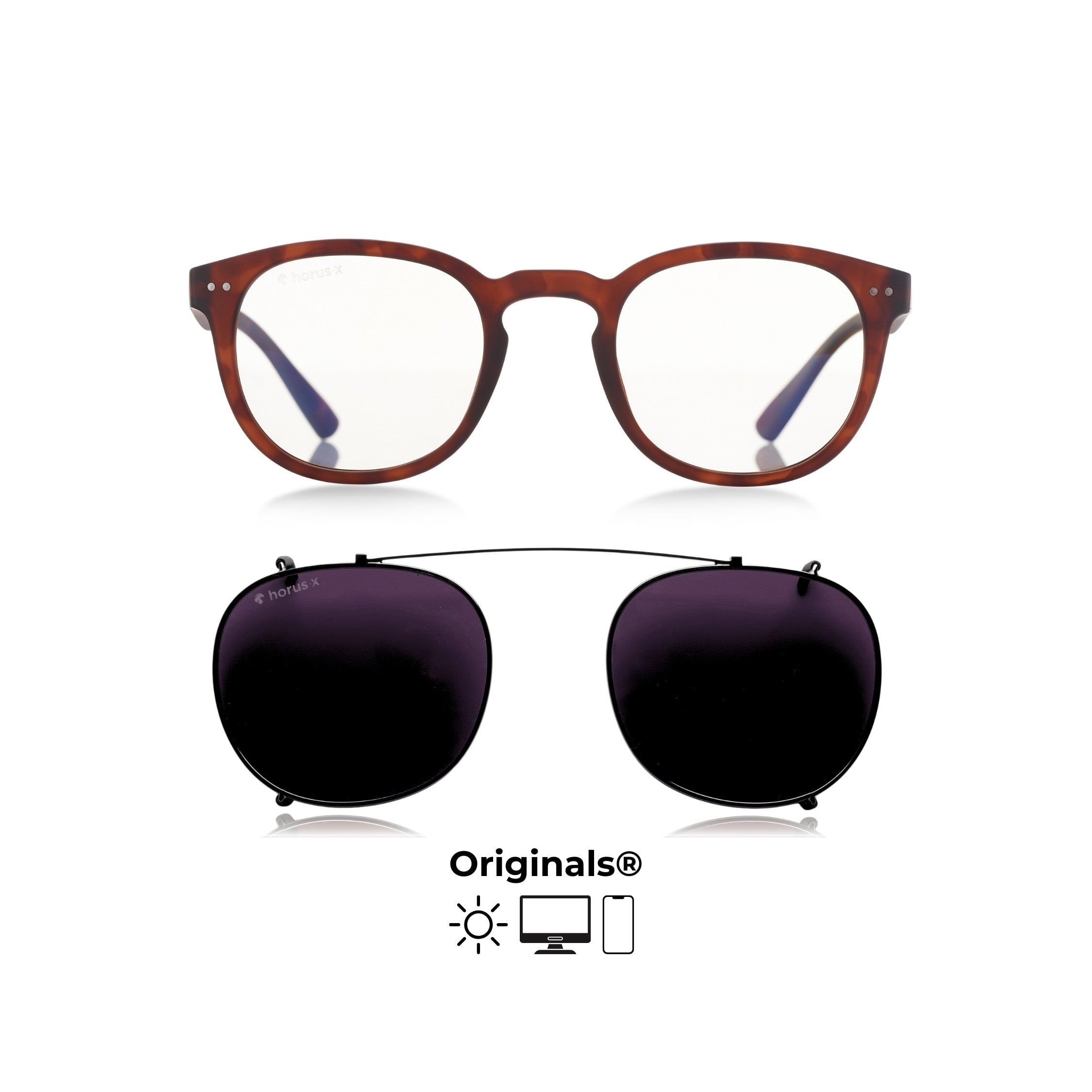 The iconic pack that equips all Horus X adventures. A pair of incredibly stylish anti-blue light glasses for your digital adventures + a category 3 solar clip-on to explore the world.