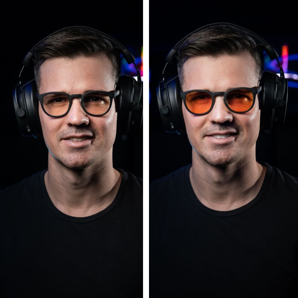 Gamer glasses designed for peak performance. Protect yourself from blue light, reduce eye fatigue and give your gaming performance 100%.