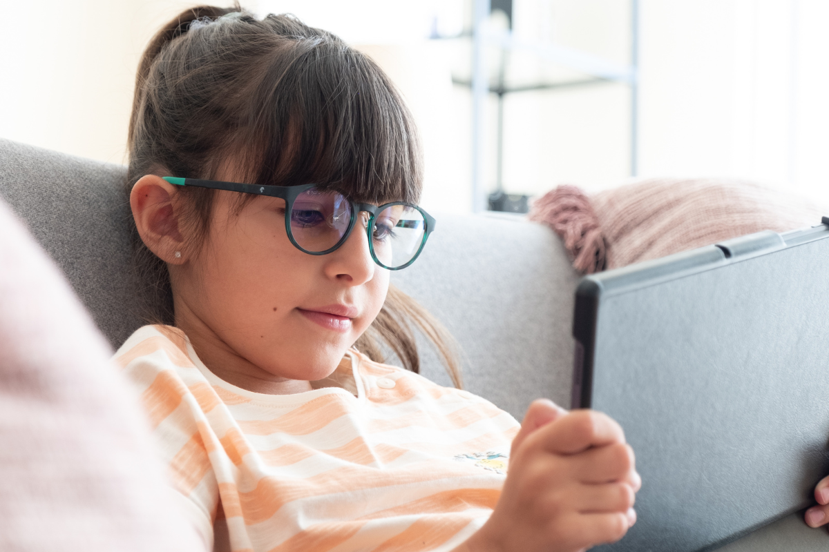Prolonged exposure of children to the blue light from screens can create sleep disturbances, cause eye strain and negatively impact healthy eye development.